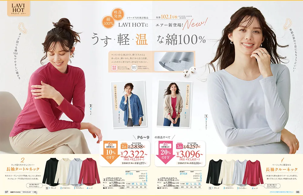 ■『LAVI HOT』人気の綿100%×あったかインナーに薄手タイプが登場!